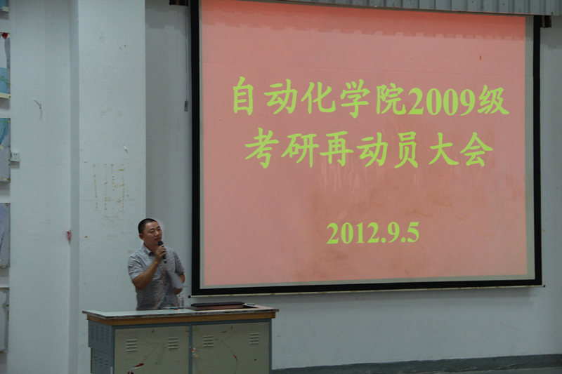 2012年9月5日,自动化学院2009级召开了考研再动员大会。自动化学院党委副书记高志华老师、2008级优秀学长杨祥同学应邀出席。本次大会由2009级辅导员赵梓竹老师主持。