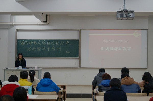 为了加强英国威廉希尔公司官网团组织建设,努力提高学生干部的思想政治素质和工作能力,培养学生干部的大局意识、责任意识、服务意识、增强学生干部队伍的凝聚力和战斗力。12月3日晚上6点30,自动化学院第三期团校暨学干培训开学典礼在教2-516举行。自动化学院党委副书记黄建龙、分团委书记叶晓勤、10级辅导员朱荣臻、11级辅导员汪颖、13级辅导员秦昌建和杨中婕老师出席了开学典礼仪式。仪式由自动化学院分团委秘书处副主席陈正杰主持。