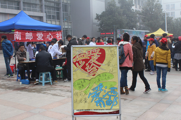2013年12月8日,南京邮电大学爱心社联合南京中医药大学爱心社在南京邮电大学南二广场组织举办了“冬日送温暖,中医药义诊”活动。这次活动为南邮广大师生提供了一个了解自己身体状况和践行健康生活方式的机会。