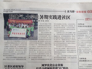 为深入学习宣传贯彻党的十八届三中全会精神、习近平总书记系列重要讲话和在北京大学师生座谈会上的讲话精神,组织引导广大青年学生在深入社会、了解国情、接受锻炼的过程中培育和践行社会主义核心价值观,牢固树立跟党走中国特色社会主义道路、为实现中国梦努力奋斗的理想信念,自动化学院组织了大学生社区主任助理挂职锻炼服务团队走进南京市栖霞区马群街道,从7月7日到7月14日,开展了以“科技走进社区,实践感悟真知”为主题的暑期社会实践活动。团队成员们走进基层,不仅协助社区主任开展日常工作,而且开展了企业调研、科技进社区、青奥文化宣传、慰问独居老人等一系列主题活动。