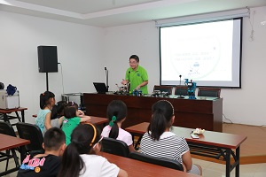 大学生给社区孩子上机器人科普课