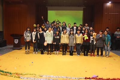 联谊活动于下午18:30开始。首先是由办公室部门精心准备的《小人舞》表演,各参演人员在优美的伴奏音乐下默契配合,节目充满童趣色彩,瞬间活跃了现场气氛。紧接着,是由外联部安排的舞台剧《晚会那些事儿》,以及各其他部门精心准备的小品、反串剧、舞蹈等。其间激动人心的游戏环节更是吸引了不少部员的参与。在主席及中干的带动下,现场氛围极其活跃,向嘉宾们展示了爱心社持久的活力与凝聚力。晚上20:30左右,持续两个小时的活动接近尾声,主持人就本次活动作了总结,并对爱心社未来寄予美好的祝愿。
