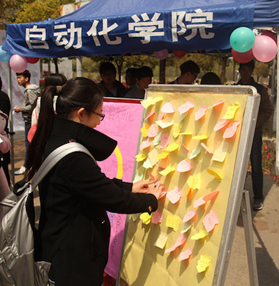 2015年4月9日至10日,南二广场人头攒动,热闹非凡。为庆祝建院十周年,自动化学院特在此举办“自动化学院精神”征集活动,借此鼓励同学们发扬自动化学院精神,再接再厉,共创学院新辉煌。