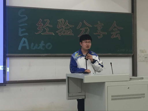 此次经验分享会共邀请了两位优秀的学长来分享他们的学习经验,畅谈他们在学习与生活中所遇到的机遇和挑战。会上,科协部长王聪作为主持人上台介绍本次交流会的目的,并为在场学生介绍本次的演讲者——自动化学院2010级毕业生徐栋与2010级毕业生肖路。