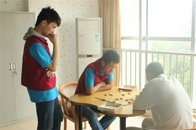 队员们在和爷爷切磋棋