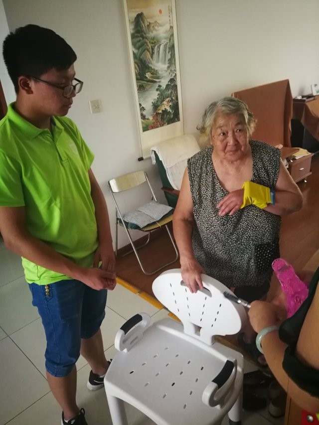 在马群青马社区,实践队员跟随社区工作者一起走进社区,慰问独居、空巢老人。队员们和老人亲密交谈。在关心他们生活的同时开解他们孤独寂寞的心情。