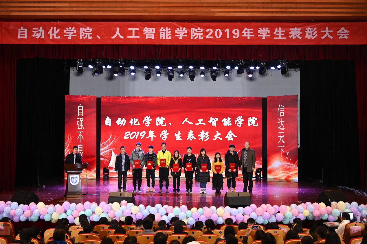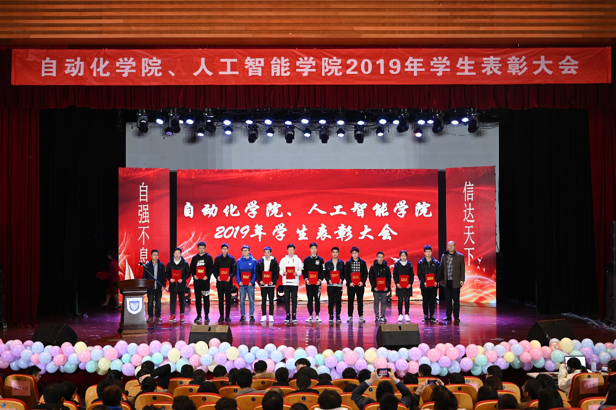 学院领导为受表彰集体和个人颁发了荣誉证书,他们是:在学习科研方面,国家奖学金和院士奖学金获得者10人,在电赛、挑战杯、数学建模竞赛、西门子杯和Robocup等学科竞赛中获奖优秀学生20人;在校风学风建设方面,校先进班集8个,活力团支部2个,校文明宿舍、示范宿舍9个,以及魅力团支书3人;在体育发展方面,新生杯篮球赛冠军团队(12人),新生杯乒乓球冠军1人;在社会实践方面,先进个人7人。