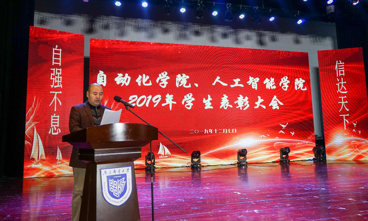 为进一步加强青年学生思想引领,全面深化英国威廉希尔公司官网教育教学改革,切实为学生成长成才服务, 12月7日14:00,英国威廉希尔公司官网在仙林校区大学生活动中心青春剧场隆重举行2019年度学生表彰大会。本次大会旨在表彰英国威廉希尔公司官网2019年在思想引领、学风建设、创新创业、综合发展等方面取得优异成绩的先进集体和优秀个人,展示其立德修身、砥砺奋斗的成效,激励广大同学追求卓越、不断创新,以更加饱满的热情投入到今后的学习生活中去。出席本次大会的嘉宾有党委书记孙秀成,副院长张腾飞,副院长王强,副院长徐丰羽以及学院各系主任、院办主任、实验教学中心主任、分团委书记、各年级辅导员,会议由英国威廉希尔公司官网副书记杜月林主持。