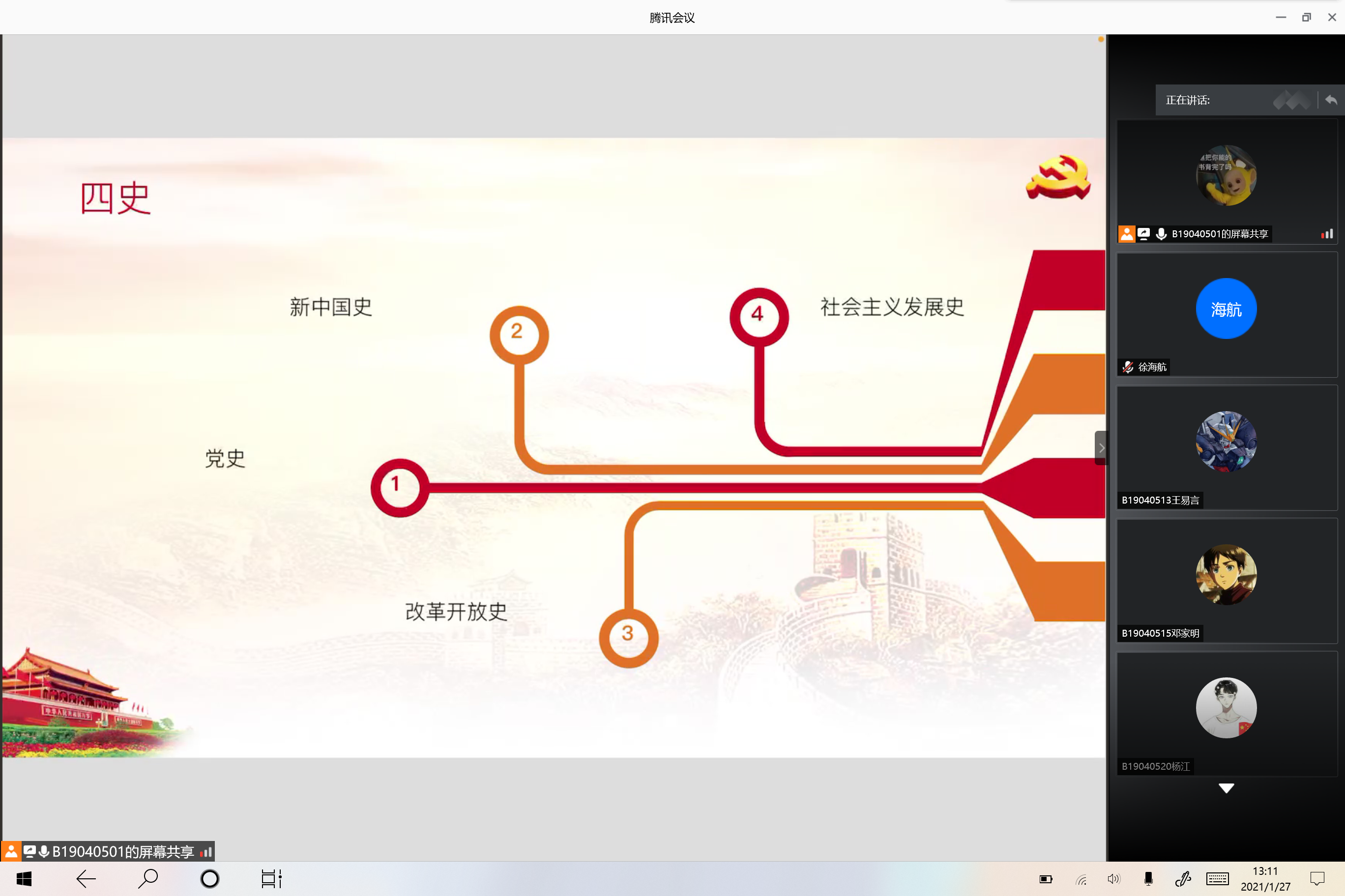 图为B190407团支部“讲颂四史 鉴往知来”主题团日活动