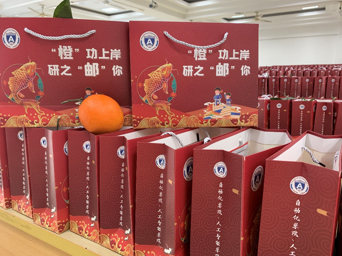 活动现场,全体领导和辅导员为同学们发放慰问品。慰问品包括考研文具、防疫物资、手写贺卡以及一颗橙子,寓意考研学子心想事“橙”!“橙”功上岸!