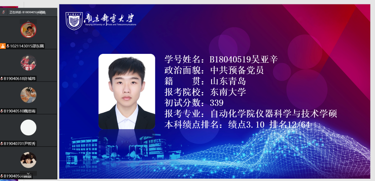 智能电网信息工程专业廉洁学姐从科目至阶段,学习视频与复习资料,将自己考取西北工业大学的经验进行了细致分享,使2019级同学们对考试科目有了更深入的了解,对时间安排有了更清晰的参考。她总结了自己在复习时的一些常见问题并一一为大家解答。在院校选择方面,他认为选择大于努力,他还强调要合理分配学习时间,保持一定的体育锻炼,调节心态,学会排解焦虑。