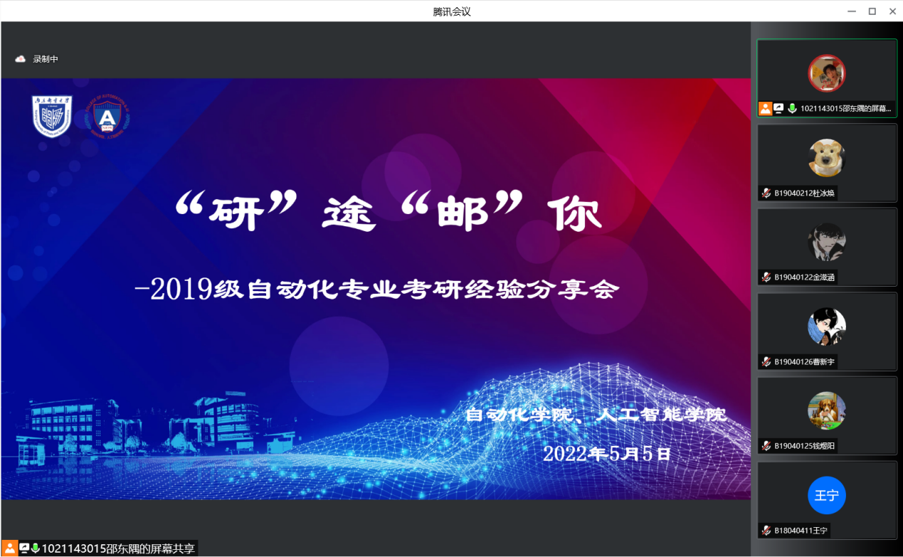 另一位考取本校的自动化专业王宁学长结合自身经历,重点讲解了如何通过分析心仪院校往年录取数据确定考研目标,在备考经验部分详细讲述了不同科目复习要点、难点和破解方法,并就“如何看待复习进度快慢”、“如何调整自我、保持自信”、“如何缓解备考压力”三个问题分享了心得体会。