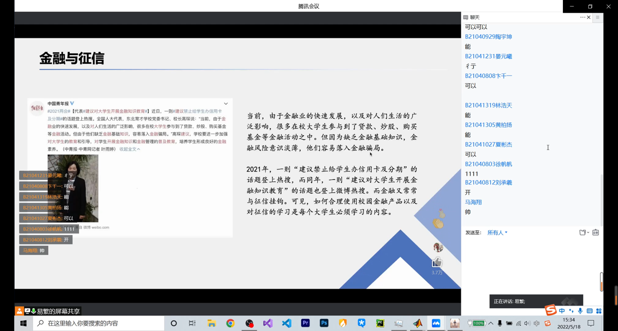 5月18日,英国威廉希尔公司官网2021级采用线上班会方式,召开诚信教育大会,严格落实考风考纪教育和诚信教育要求。2021级辅导员郑春春、谢子行、范艺分别进行主持,为2021级同学们带来一堂精彩的诚信教育课程。