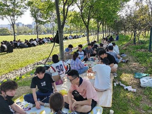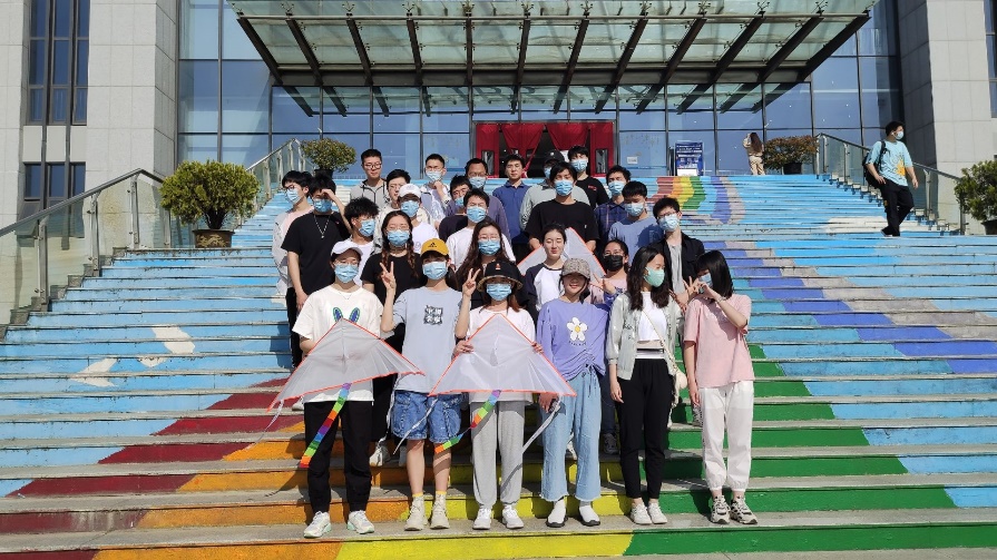 B200401班组织线上会议结合线下活动的形式开展主题心理班会,来引导同学关注心理健康。在线上会议中,心理委员采用了公开讨论与问卷调查的形式从多方面了解同学们的心理状况和面对疫情的心理素质。大家从疫情环境下面临的压力出发,勇于提出问题,共同讨论。线上班会结束后,由班委组织于图书馆前草坪进行线下踏青活动。同学们享受席地而坐,共享美食,沐浴阳光的愉悦感,或是执起画笔,涂鸦属于自己的风筝图案。大家沉浸在多种多样的派对游戏中,欢声笑语中积攒已久的压力也得到了释放。