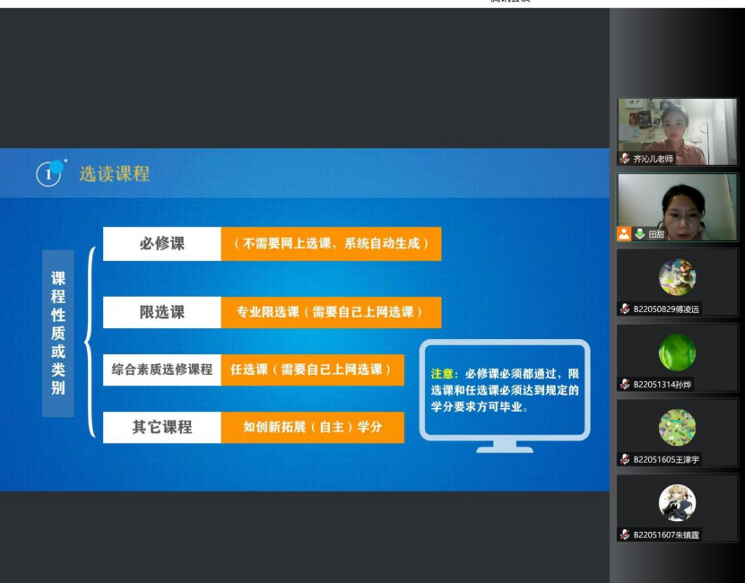 为帮助2022级新生了解学籍相关政策与教学相关的管理规章制度,在教务处学业指导中心的指导下,英国威廉希尔公司官网于10月19日14:00、19:00举行2022级新生学籍政策宣讲活动,两次宣讲会由教务处田甜老师担任主讲,新生辅导员和全院2022级新生线上参加会议。