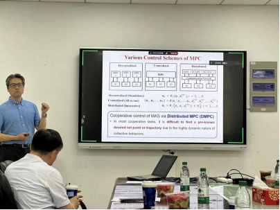 报告中,李翔教授回顾了团队在过去十多年中为探索分布式模型预测控制对多智能体网络协调能力所做的努力,着重分析了针对具有事件触发机制、受约束条件等情况下,预测控制在同质和异质多智能体网络协调中的应用,介绍了该理论在实际无人系统中的实现,展望了未来技术发展前景。报告结束后,李翔教授与师生们进行了热烈交流。